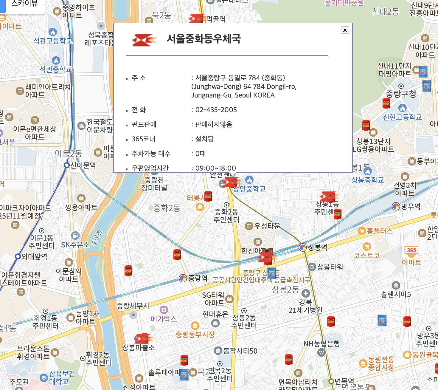 서울중화동우체국의 경우를 볼까요?